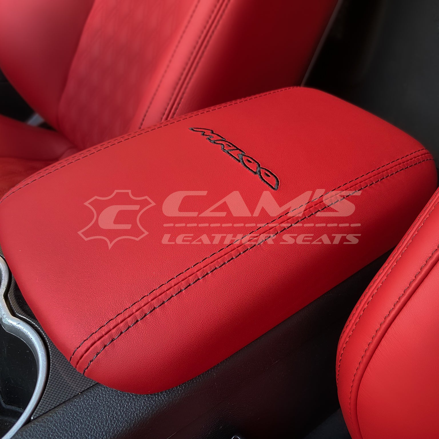 HSV VE MALOO - RED ITALIAN LEATHER ALL OVER WITH TWIN DIAMOND STITCHING AND MATCHING DOORS AND CONSOLE LID