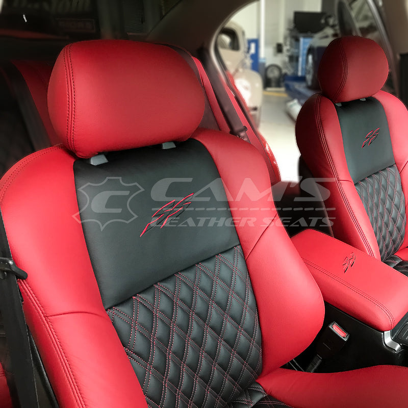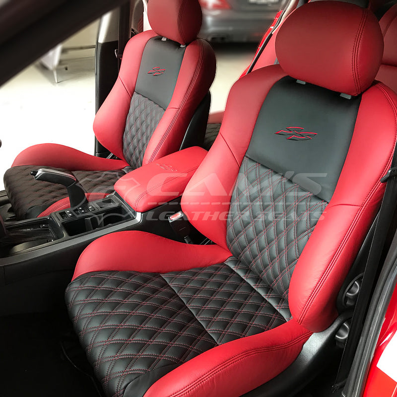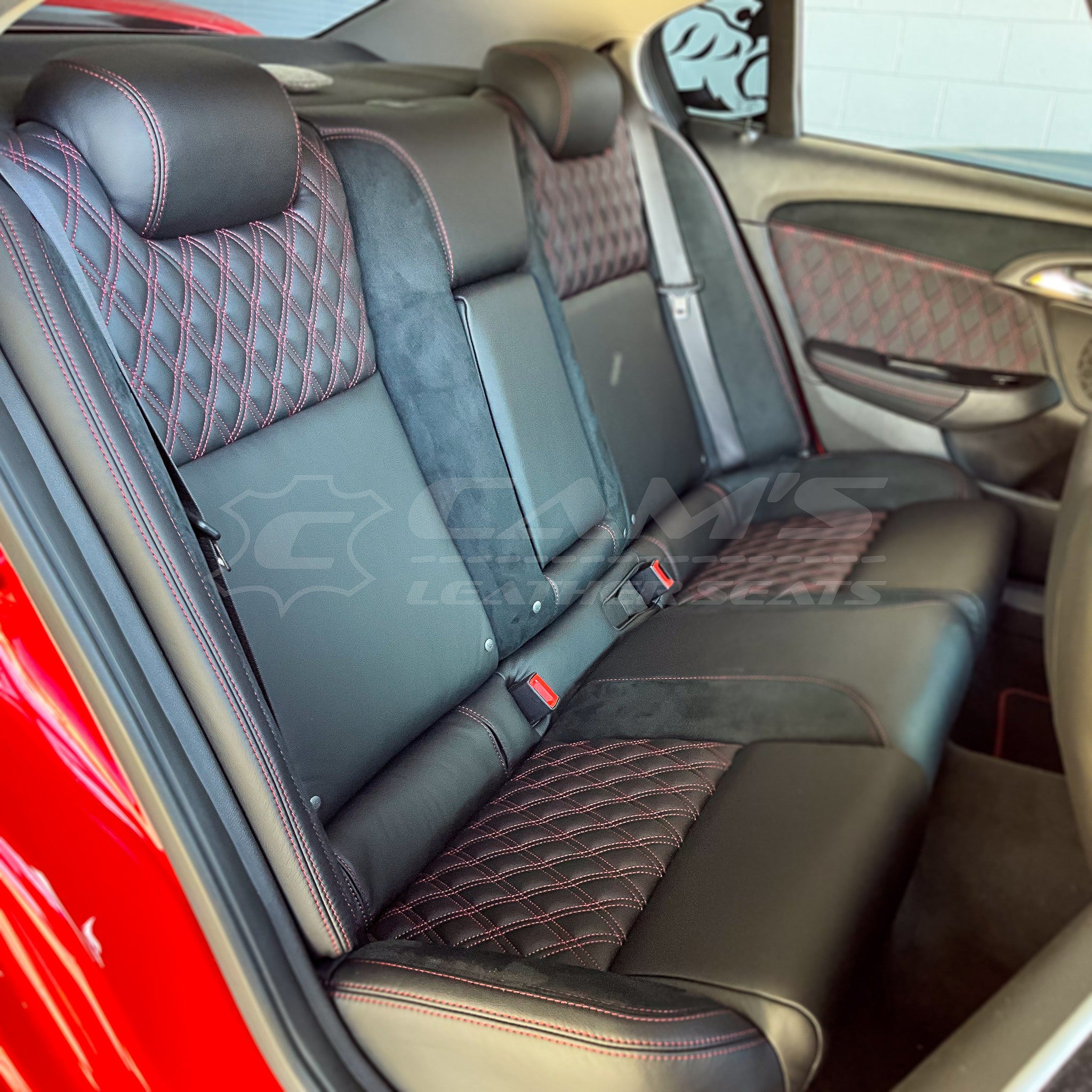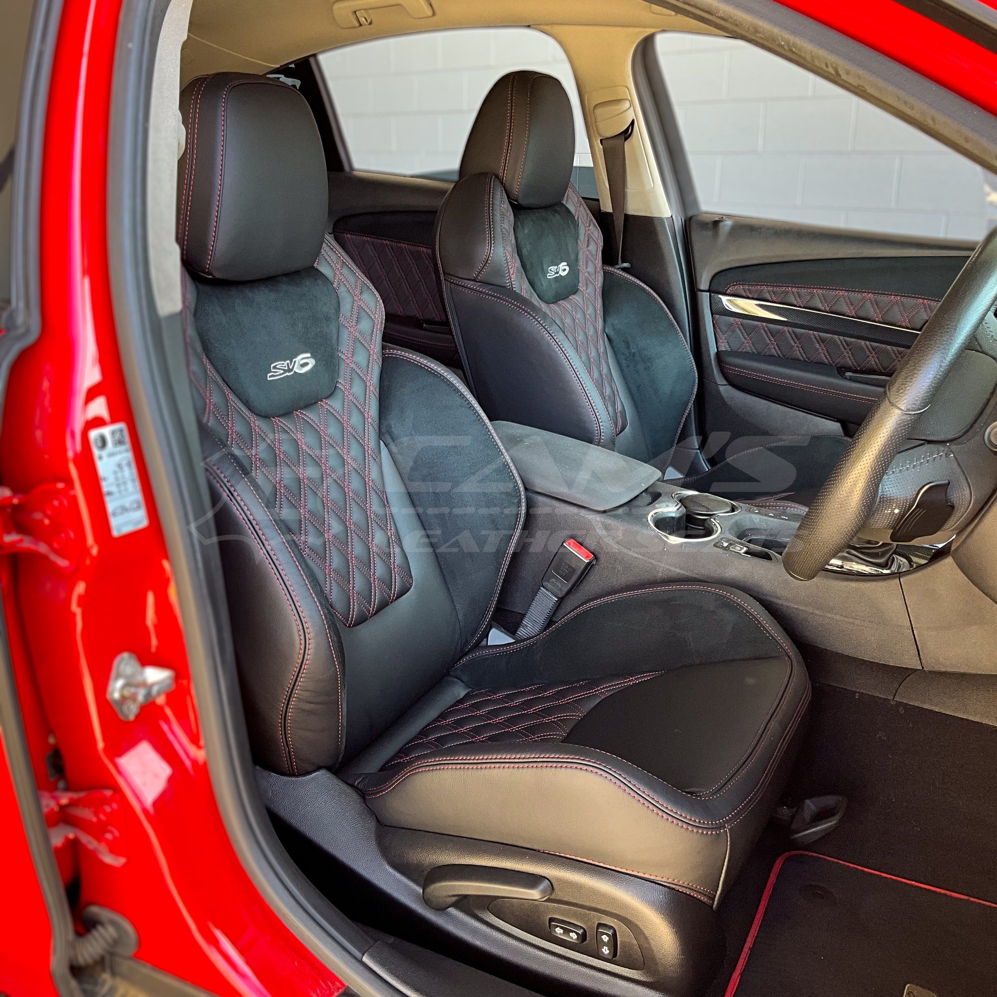 HOLDEN VY SERIES 1 SS - RED & BLACK 2-TONE FULL ITALIAN LEATHER WITH TWIN DIAMOND STITCHING
