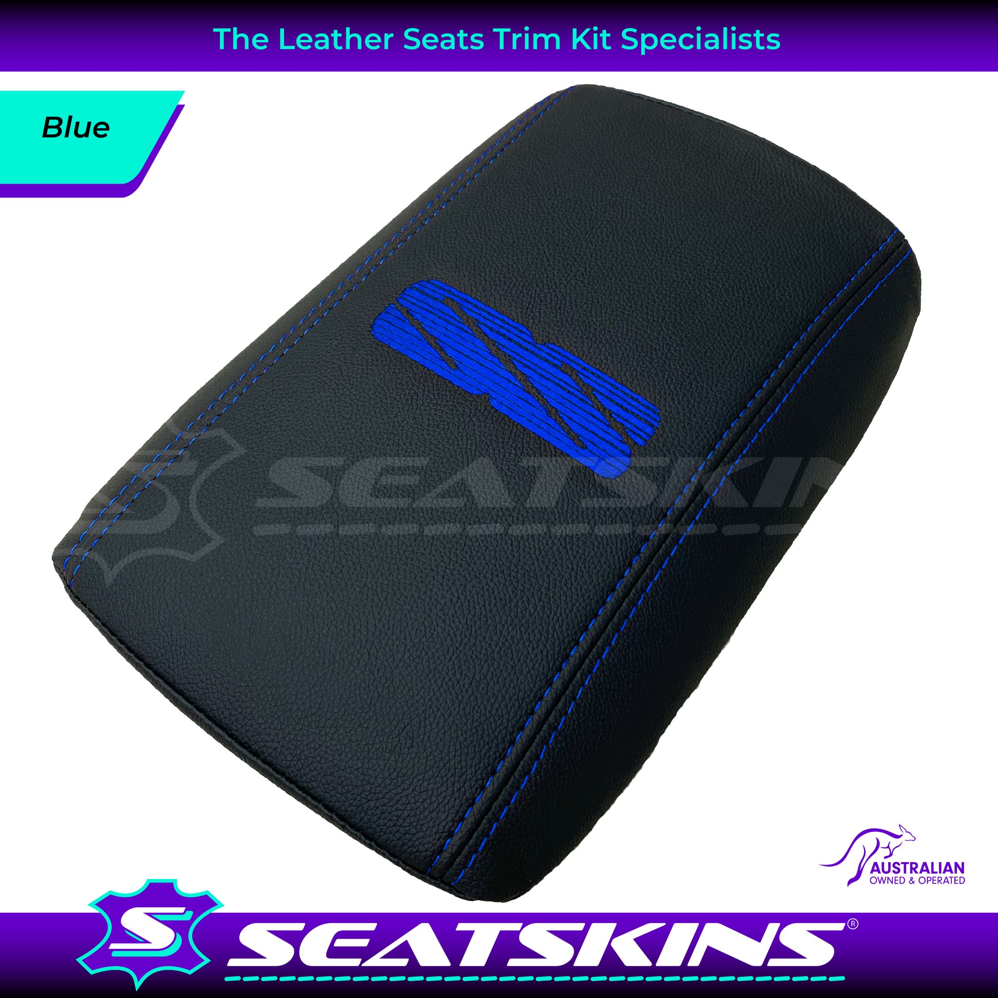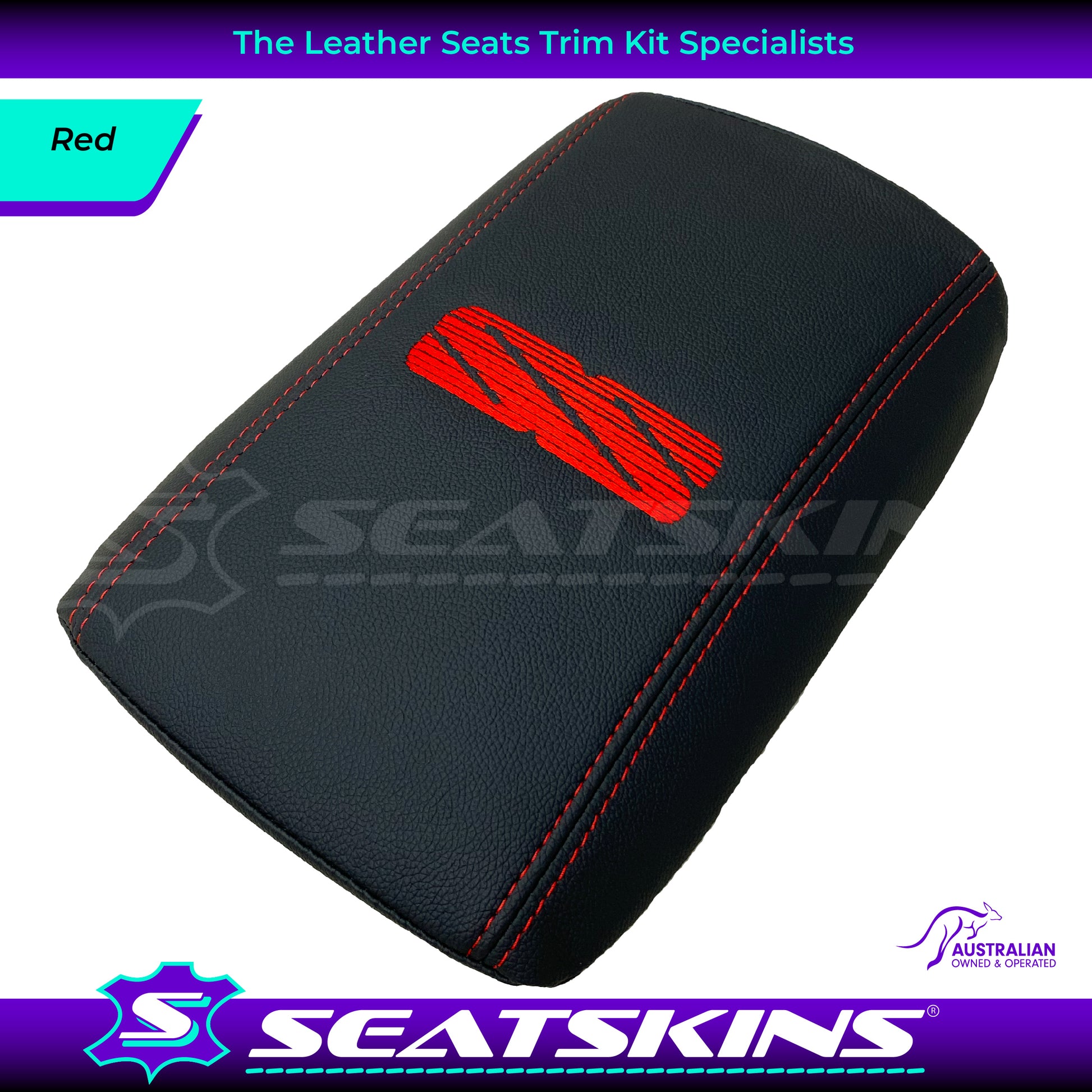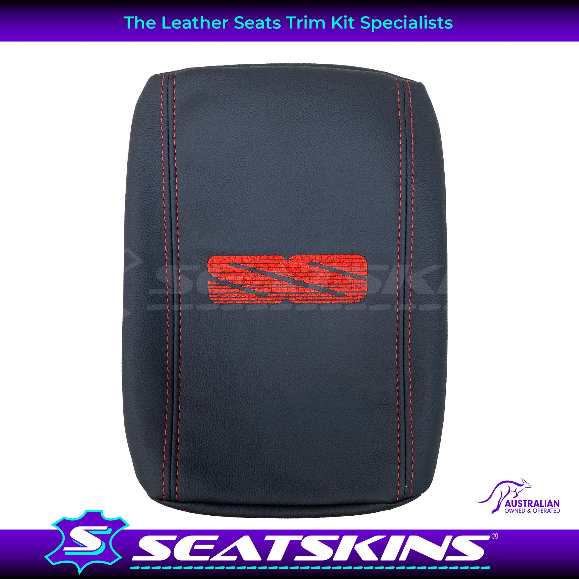 CUSTOM CONSOLE COVER TO FIT HOLDEN VE OR VF LOW HEIGHT CONSOLE LID/ARMREST WITH BROCK SS GROUP A STYLE LOGO & MATCHING CONTRAST STITCHING. CHOOSE YOUR COLOUR.