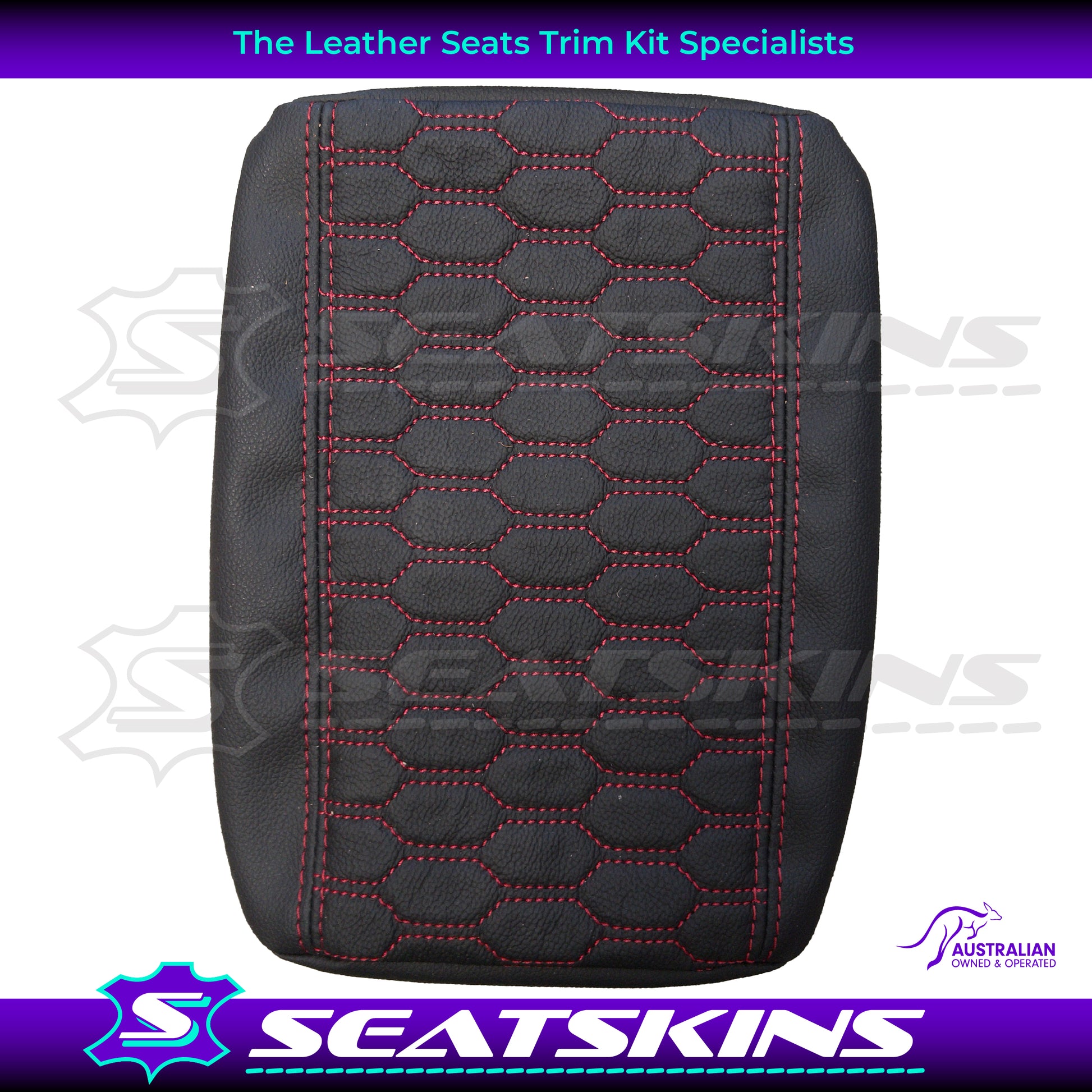 CONSOLE COVER FOR VE/VF LOW HEIGHT SHAPE RED HEXAGON STITCHING. LEATHER CENTRE AND LEATHERETTE SIDES.