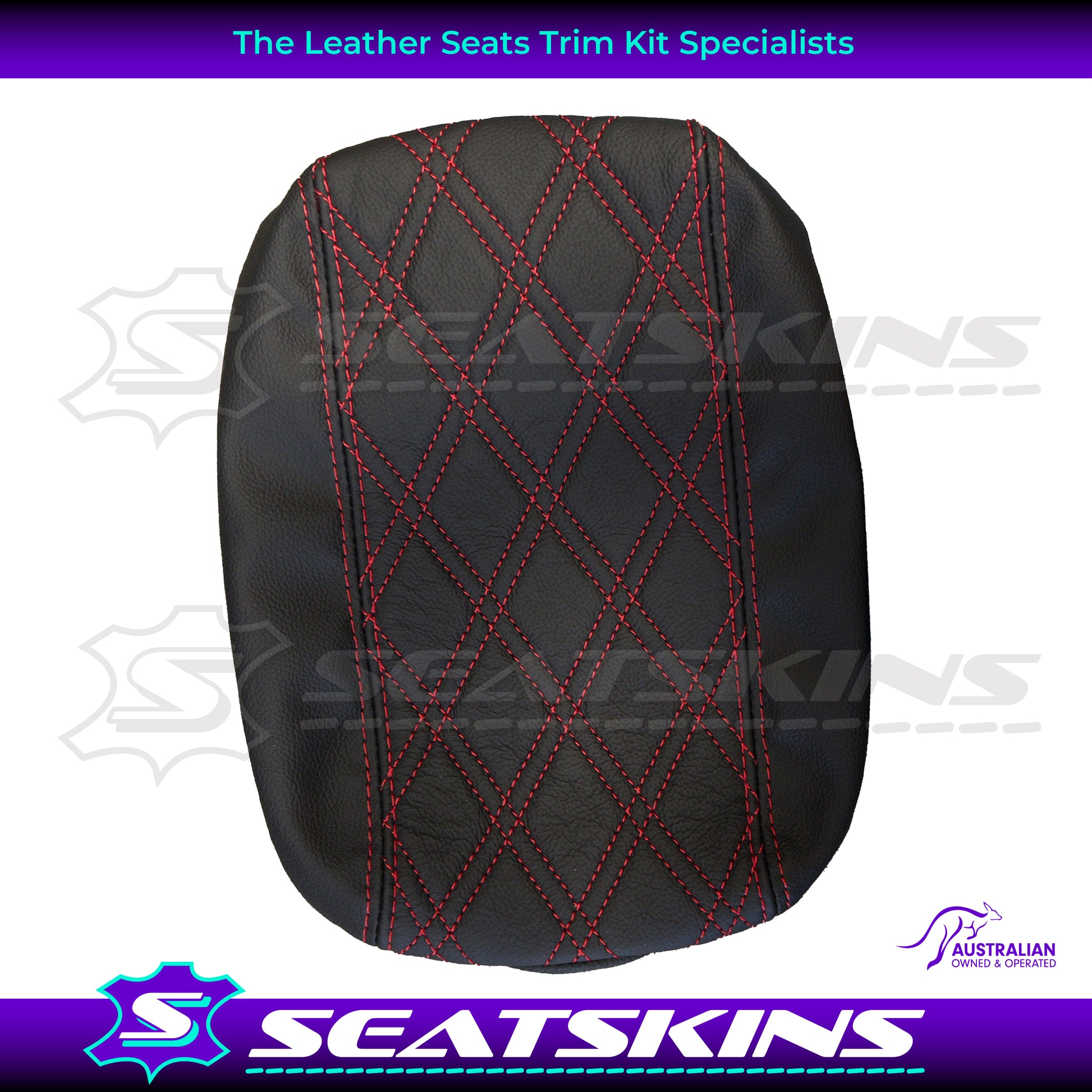 CONSOLE COVER FOR VE/VF MID SHAPE ONYX RED DOUBLE DIAMOND STITCHING. LEATHER CENTRE AND LEATHERETTE SIDES.