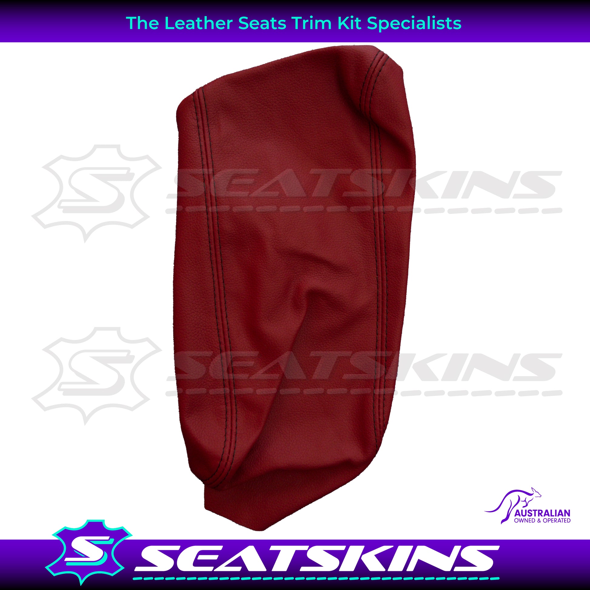 CONSOLE COVER FOR VY/VZ RED HOT LEATHER WITH BLACK STITCHING.