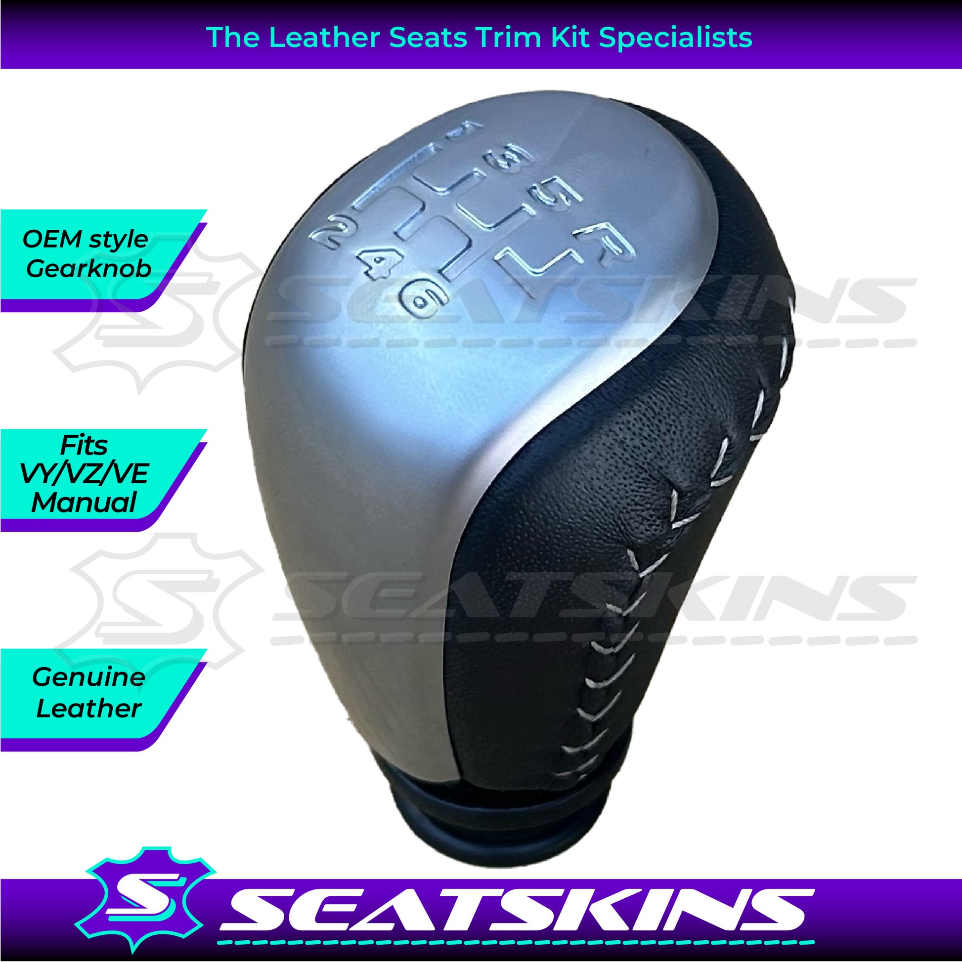 MANUAL GEAR SHIFTER KNOB AND CAP TO FIT HOLDEN VY/VZ/VE WITH SILVER STITCHING