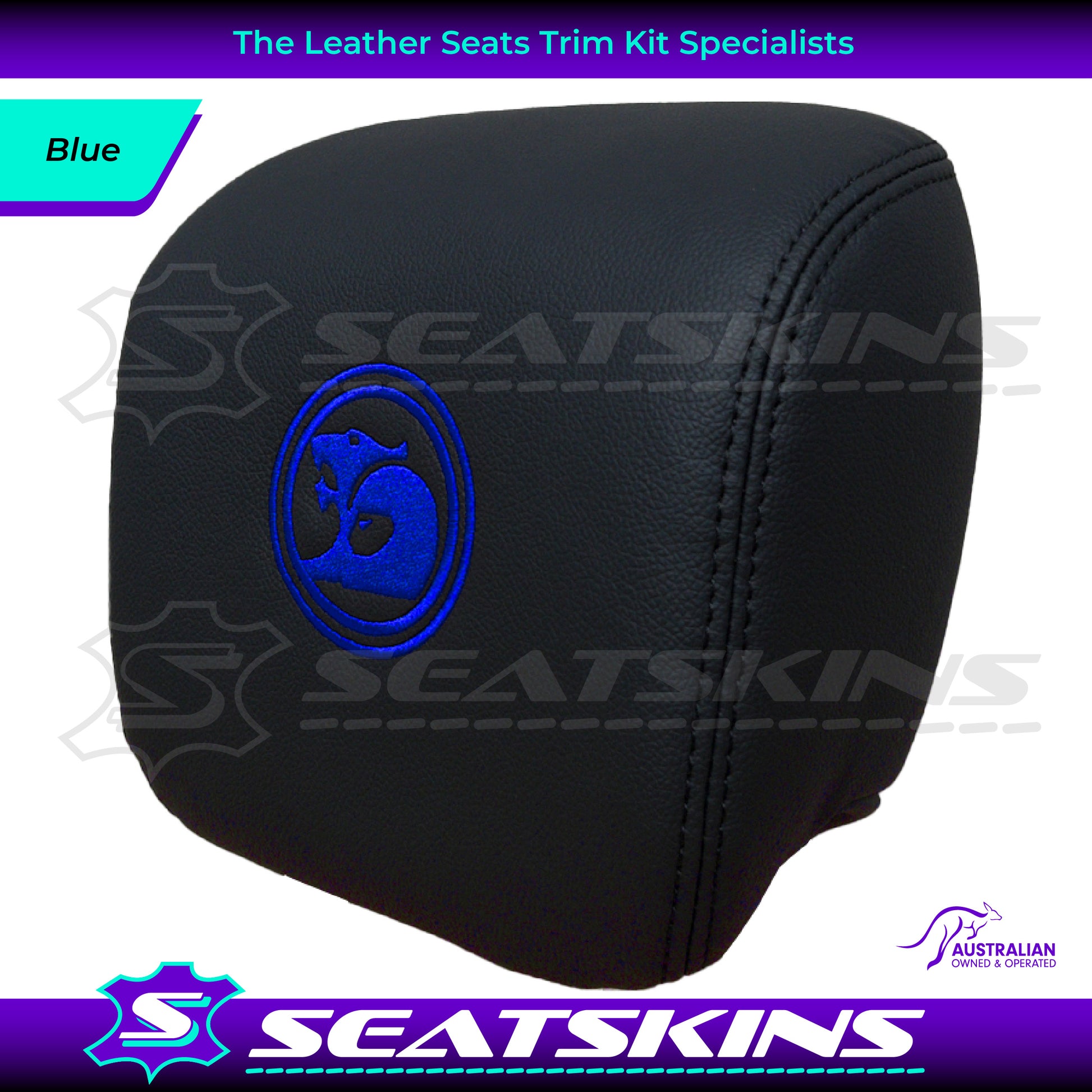 HEADREST COVERS PAIR FOR VE SEATS IN ONYX BLACK LEATHERETTE WITH BLACK STITCHING AND CHOOSE YOUR COLOUR FOR THE HSV LOGOS!