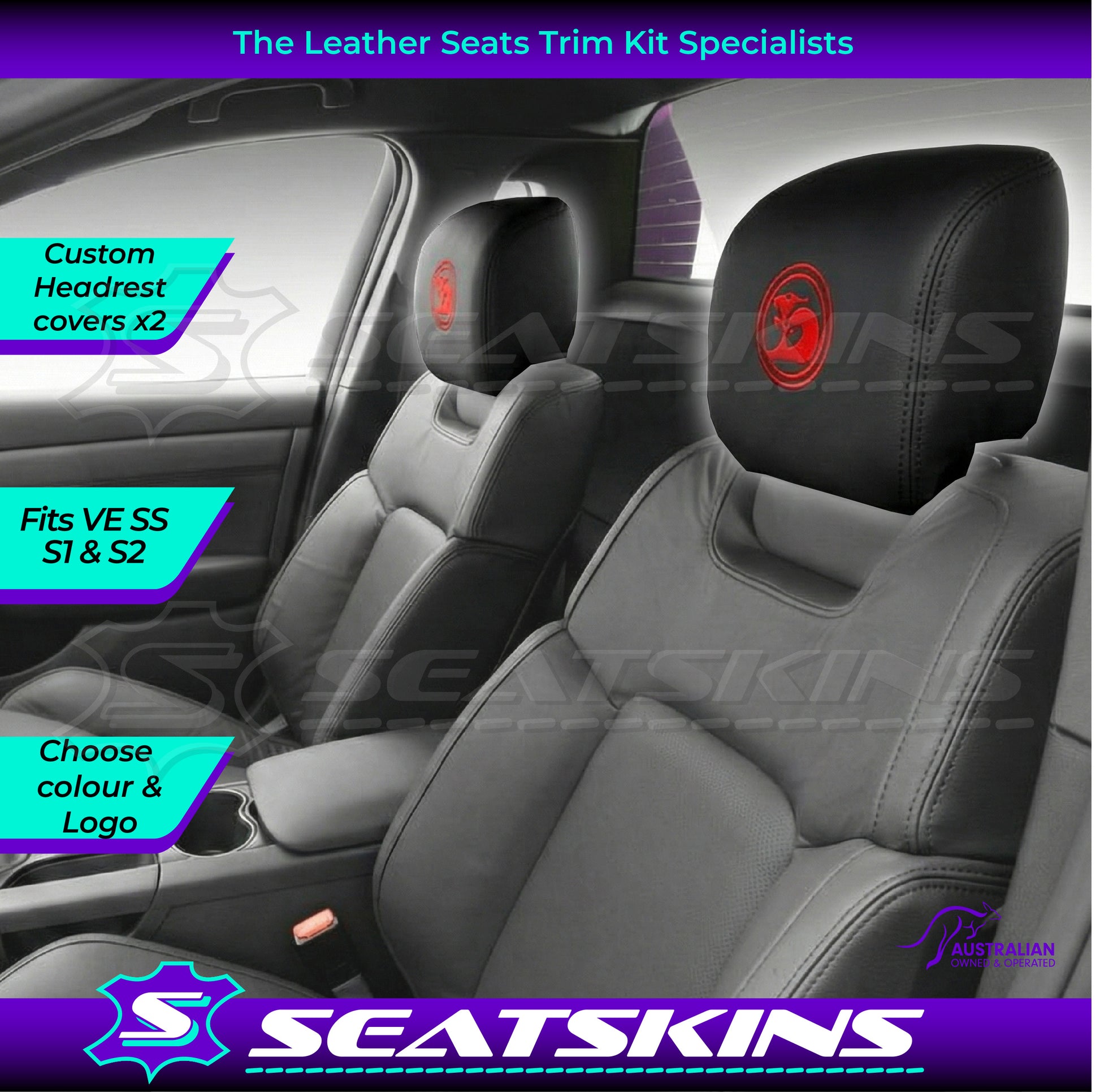 HEADREST COVERS PAIR FOR VE SS/SV6 s2 ONYX BLACK LEATHERETTE CUSTOM HSV LOGO