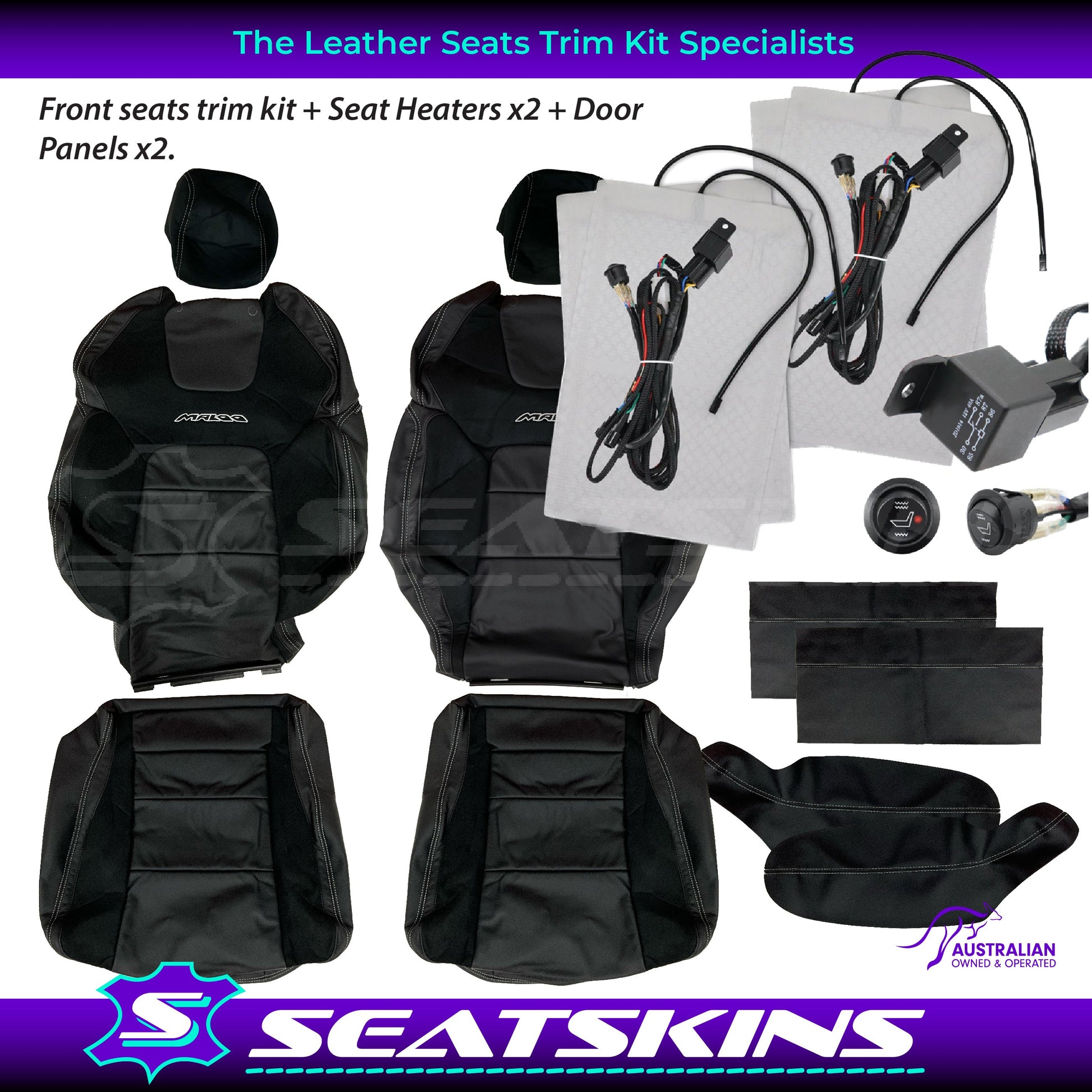 AFTERMARKET LEATHER TRIMS TO REPLACE THE EXISTING CLOTH OR OLD LEATHER TRIM ON THE FRONTĀ 2 SEATS WITH NEWĀ LEATHERĀ COVERS MADE TO OEM SPECS.