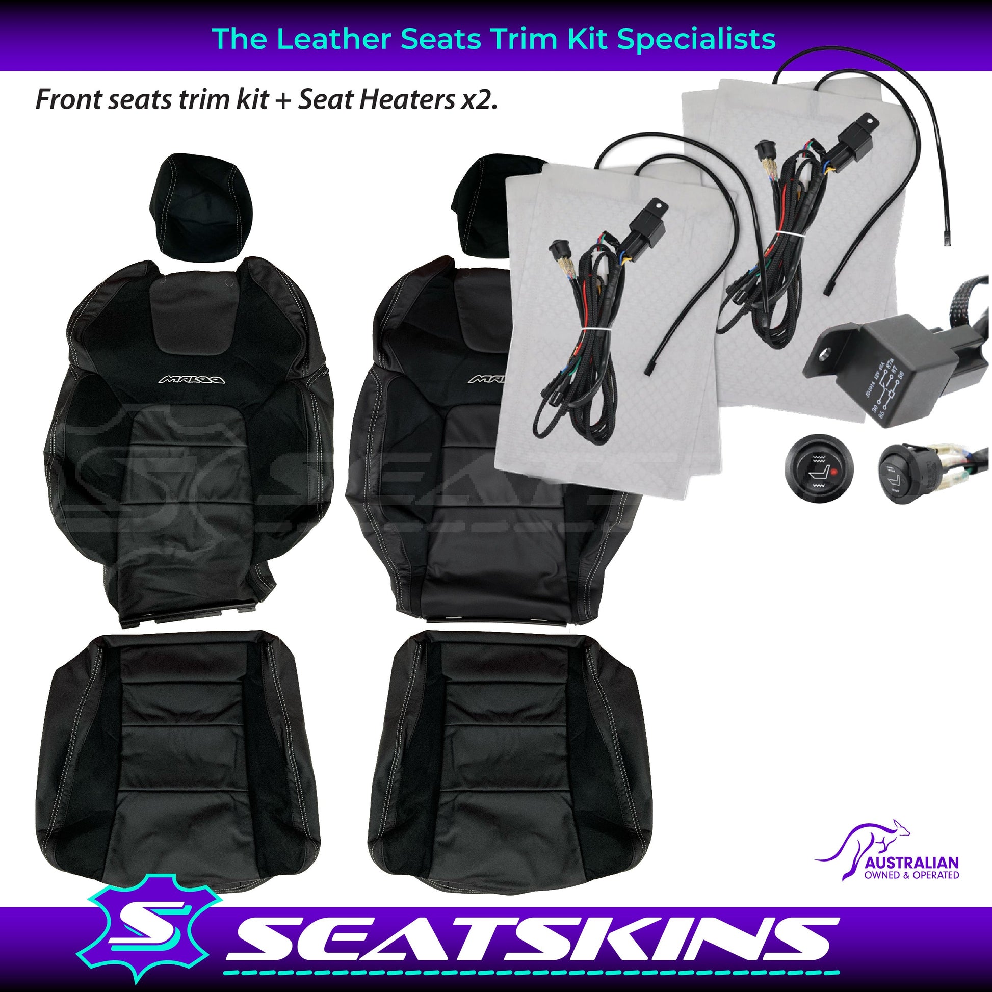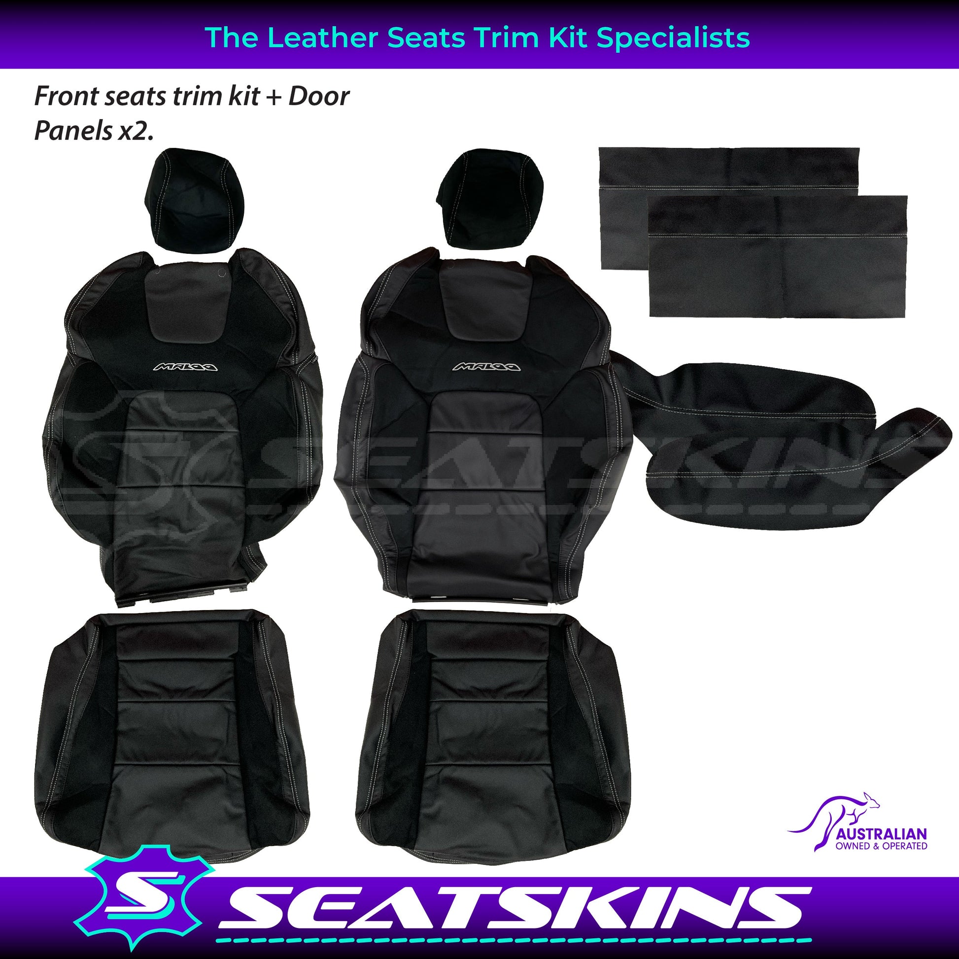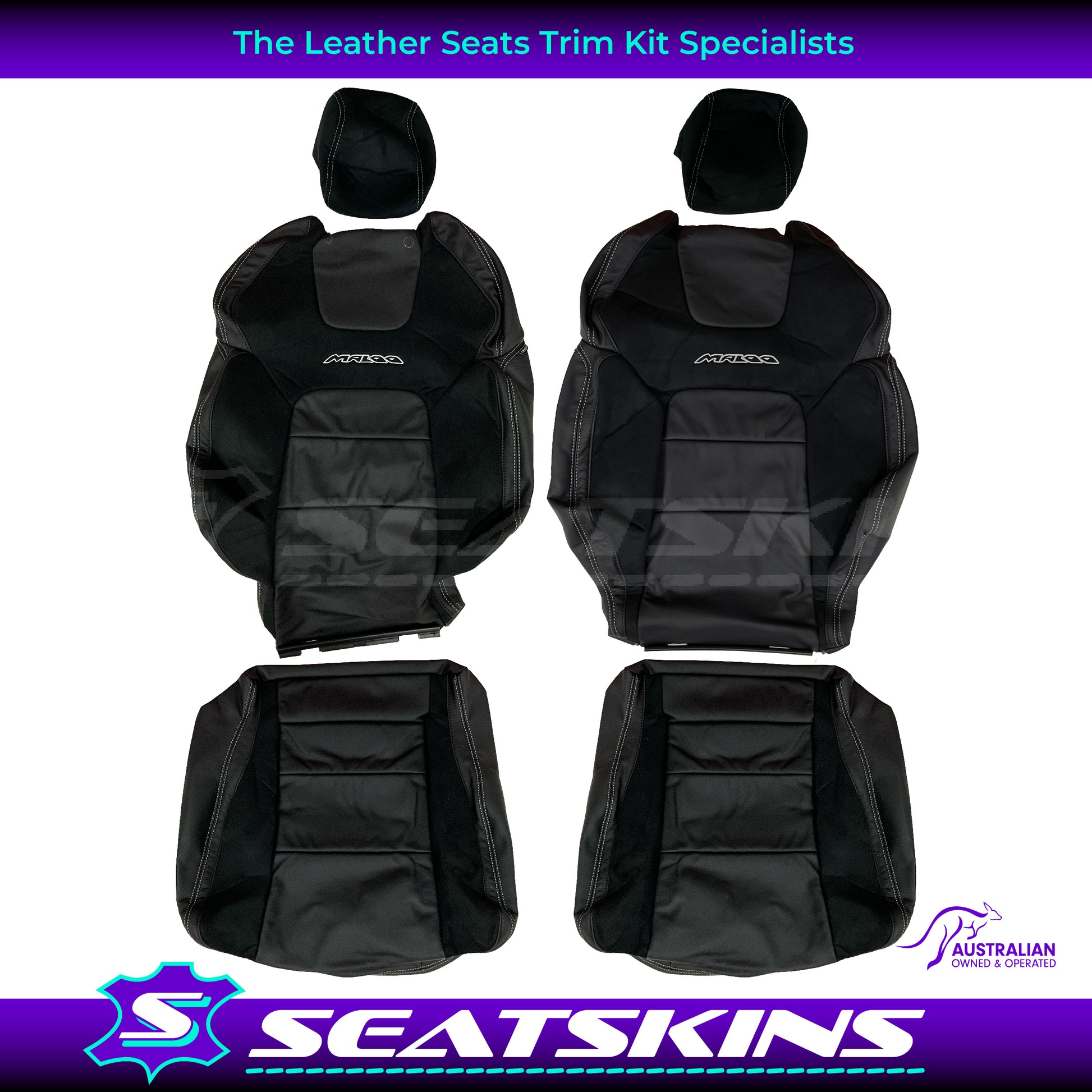 THIS LISTING IS FOR A LEATHER SEATS TRIM KIT FOR HOLDEN HSV VE MALOO UTE FACTORY STYLE IN BLACK LEATHER WITH BLACK SUEDE AND SILVER STITCHING FRONT SEATS (2 SEATS TOTAL).