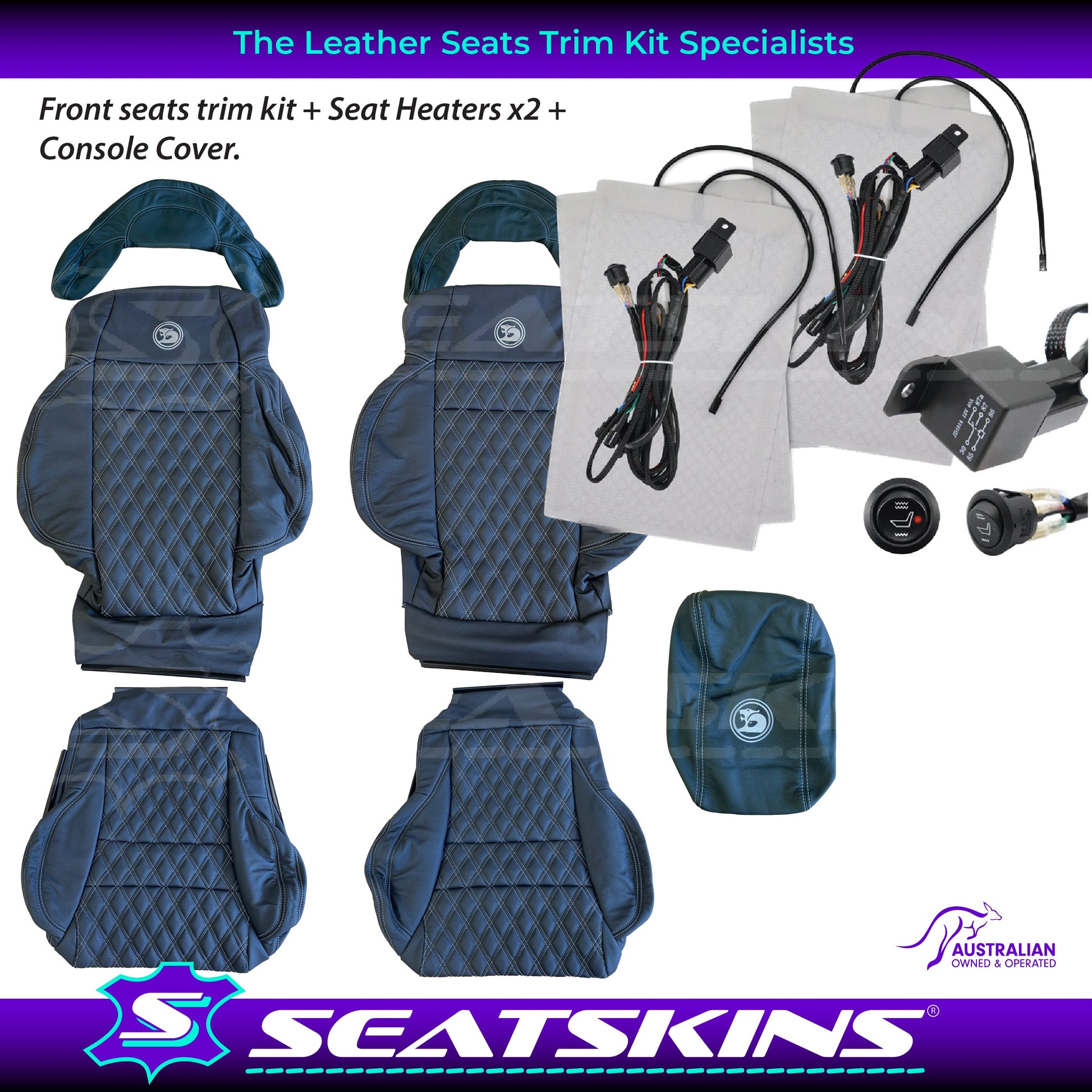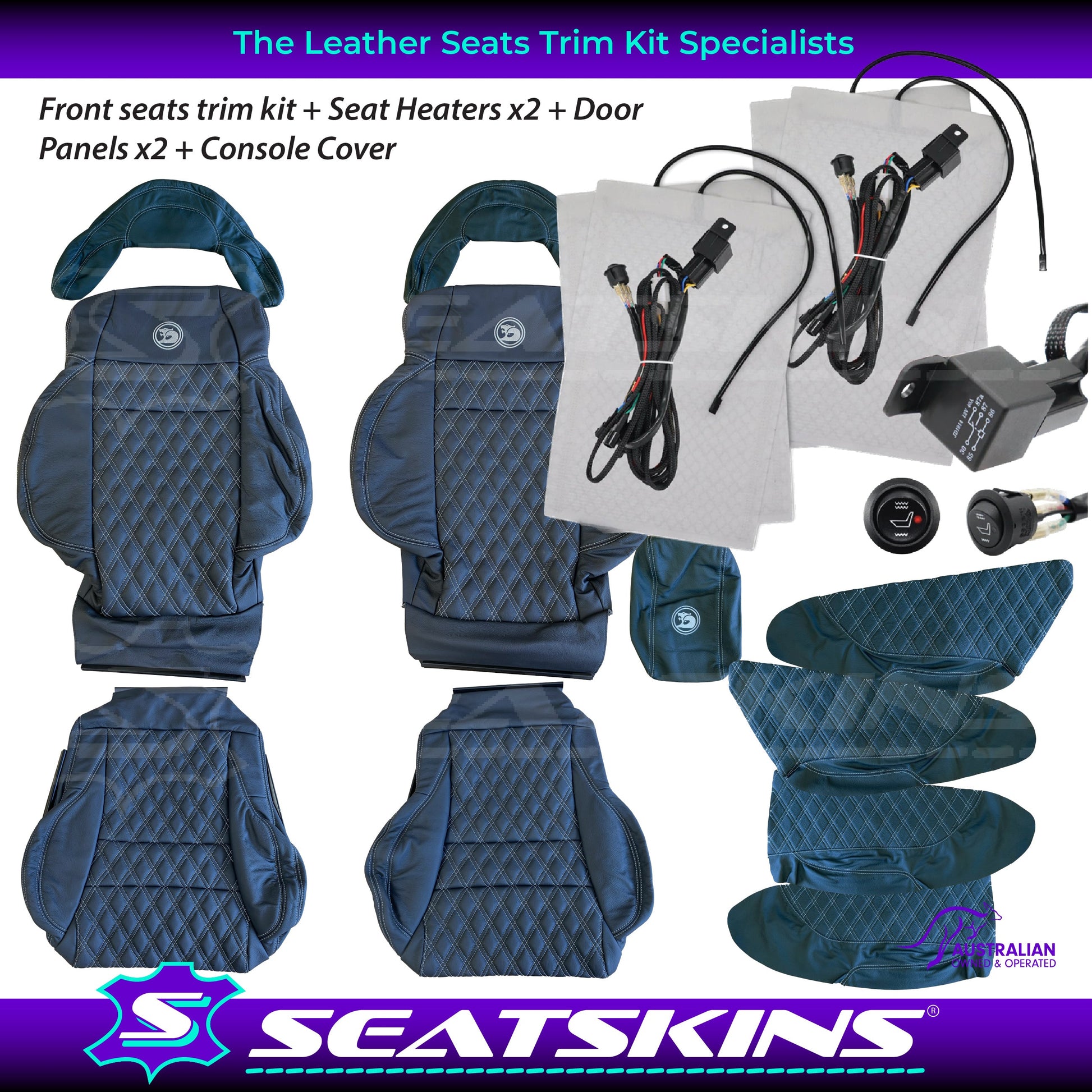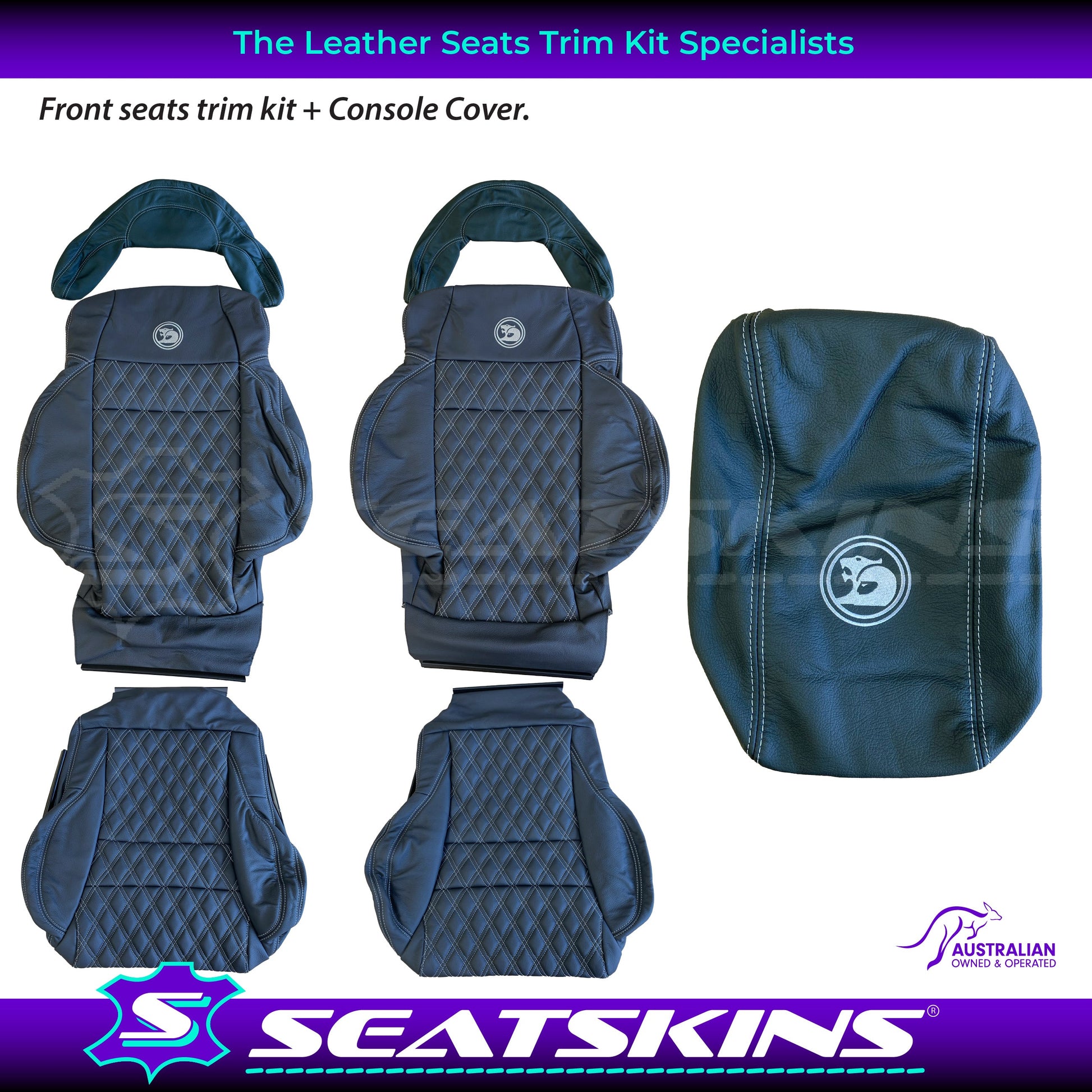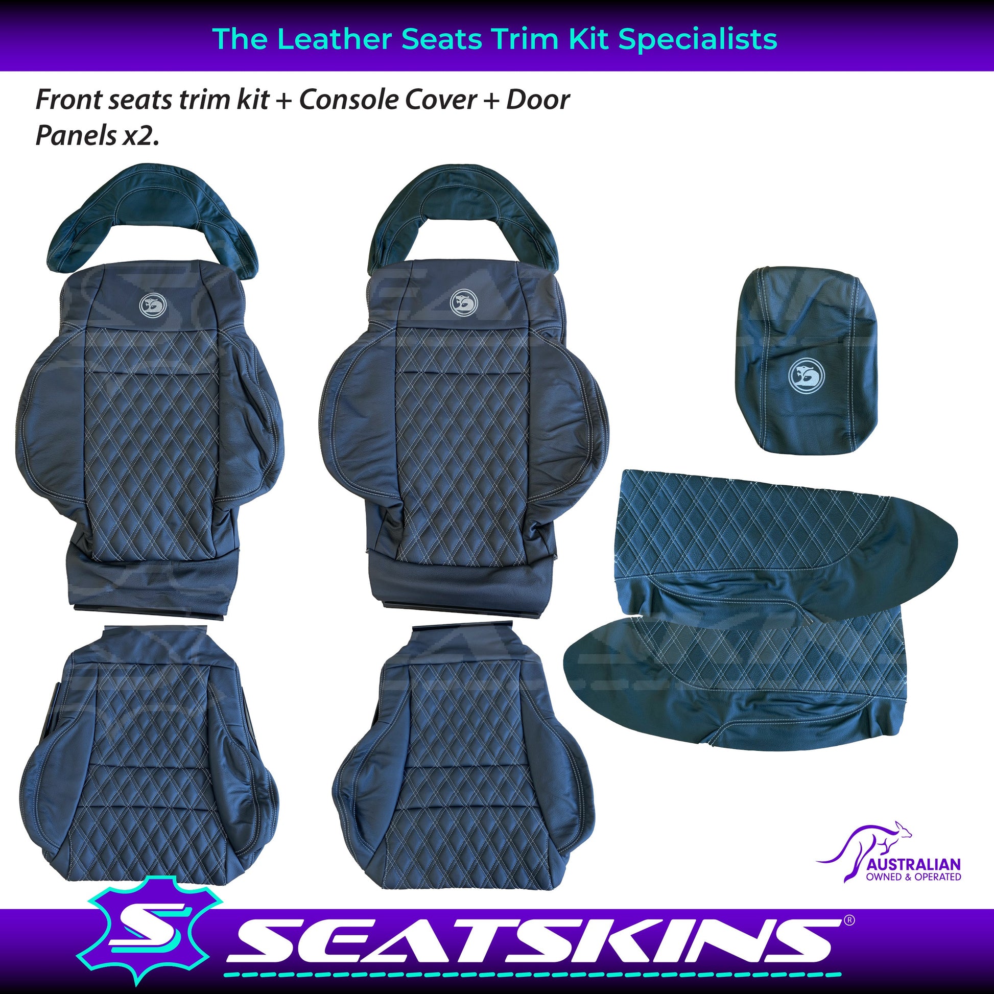 LEATHER SEATS TRIM KIT FOR HSV COULSON 2 SEATS BLACK WITH SILVER DIAMOND STITCH