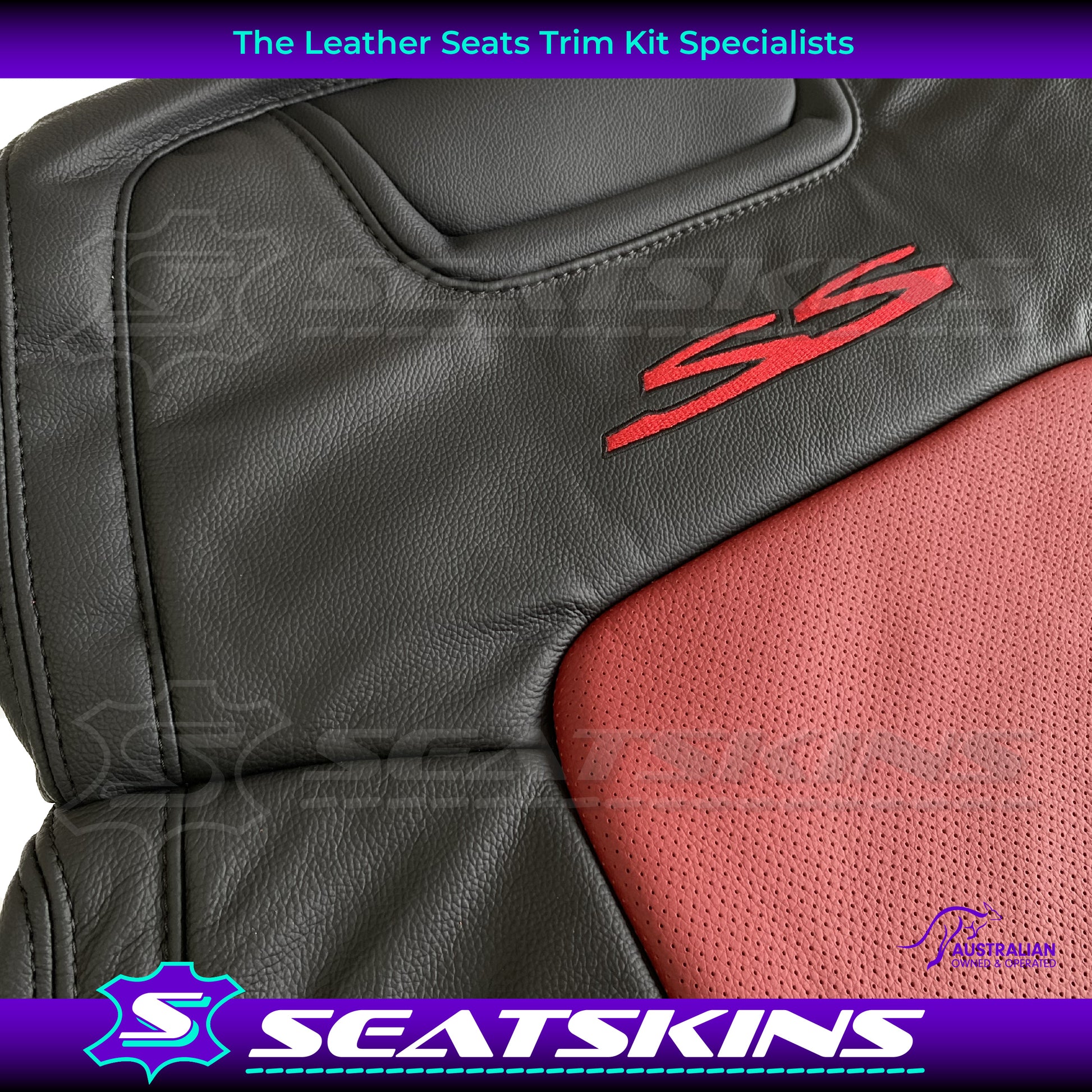 LEATHER SEATS TRIM KIT FOR VE SS 2 FRONT SEATS OR UTE ONYX & RED HOT INSERTS