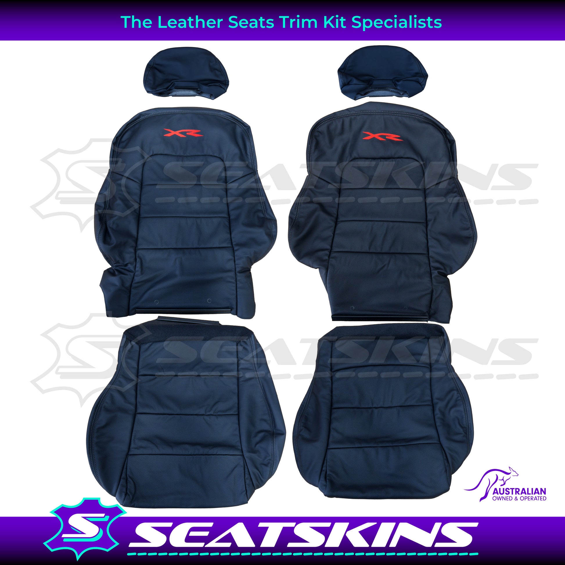 LEATHER SEATS TRIM KIT FOR BA/BF XR 2 FRONT SEATS RED XR LOGO