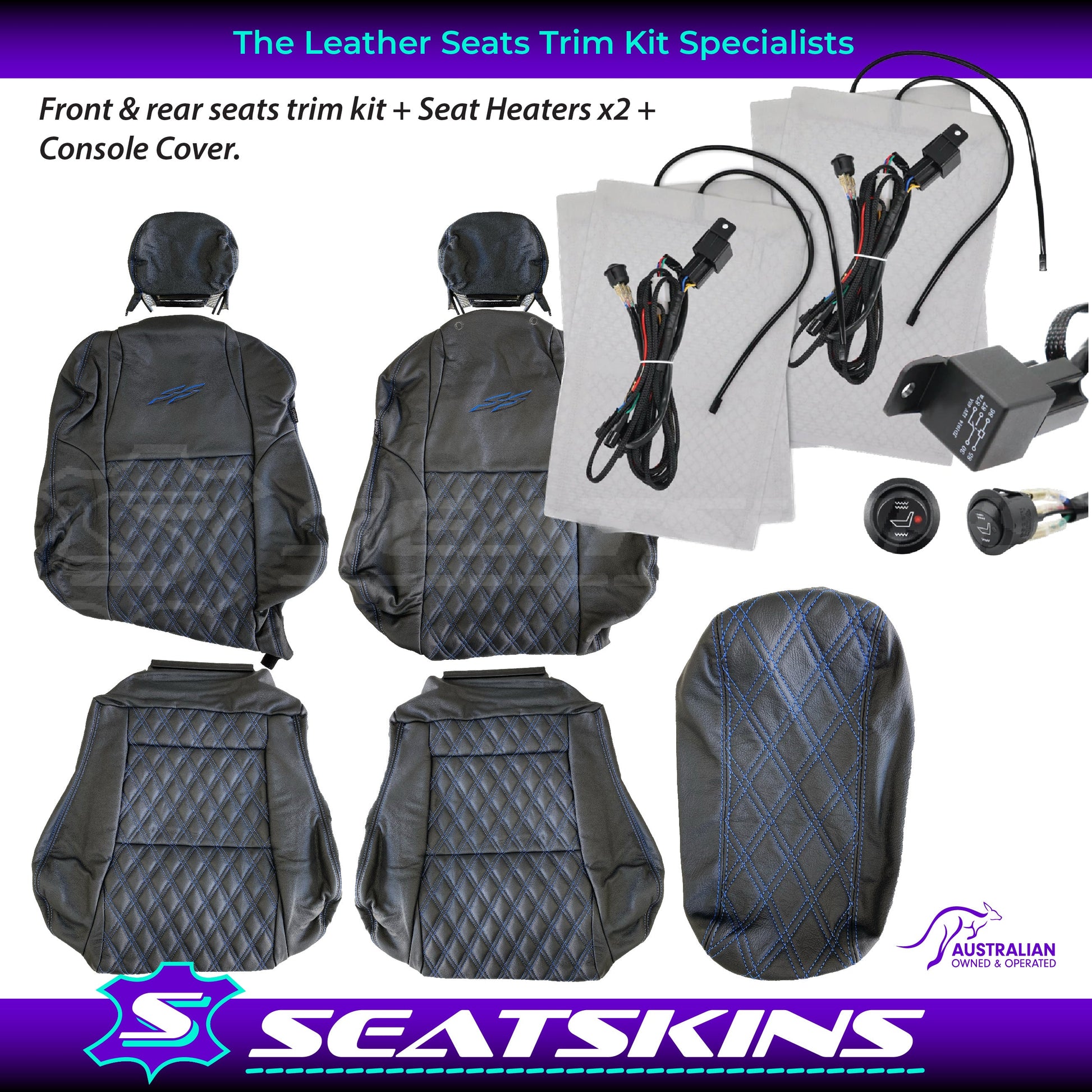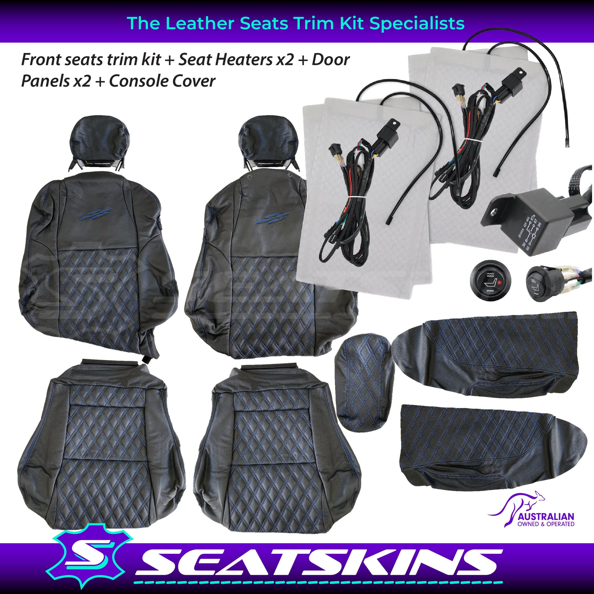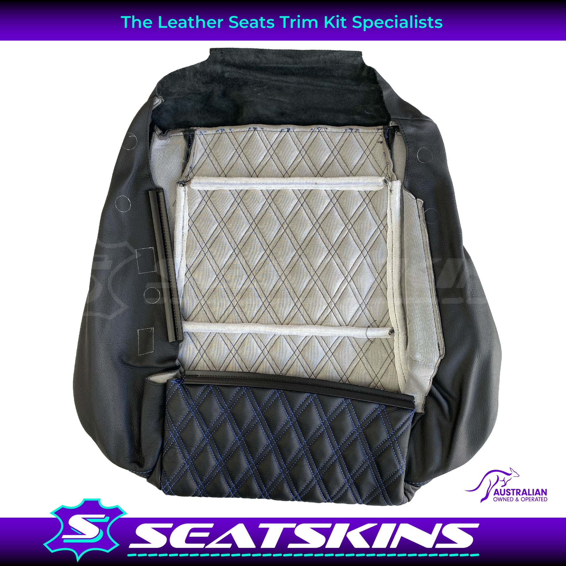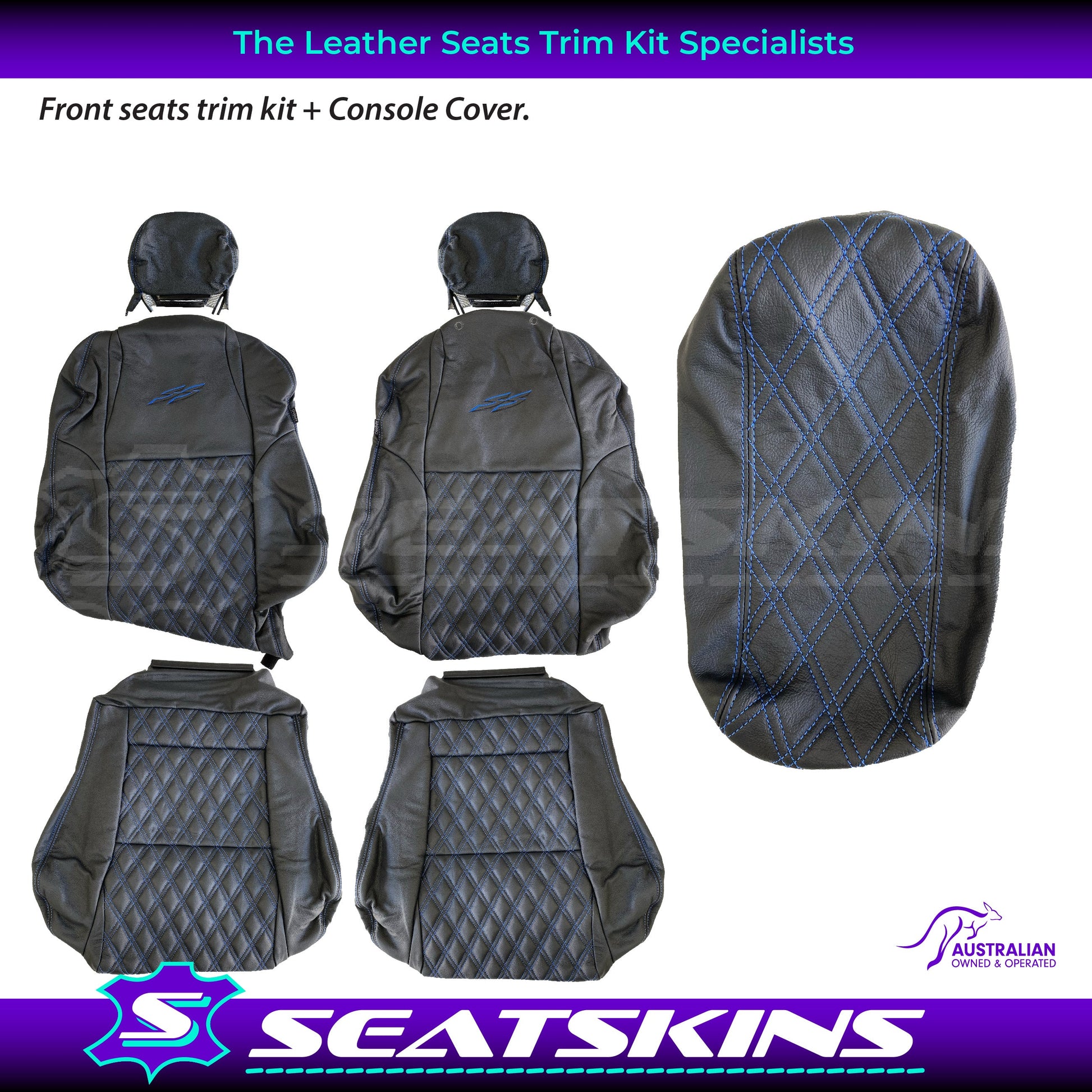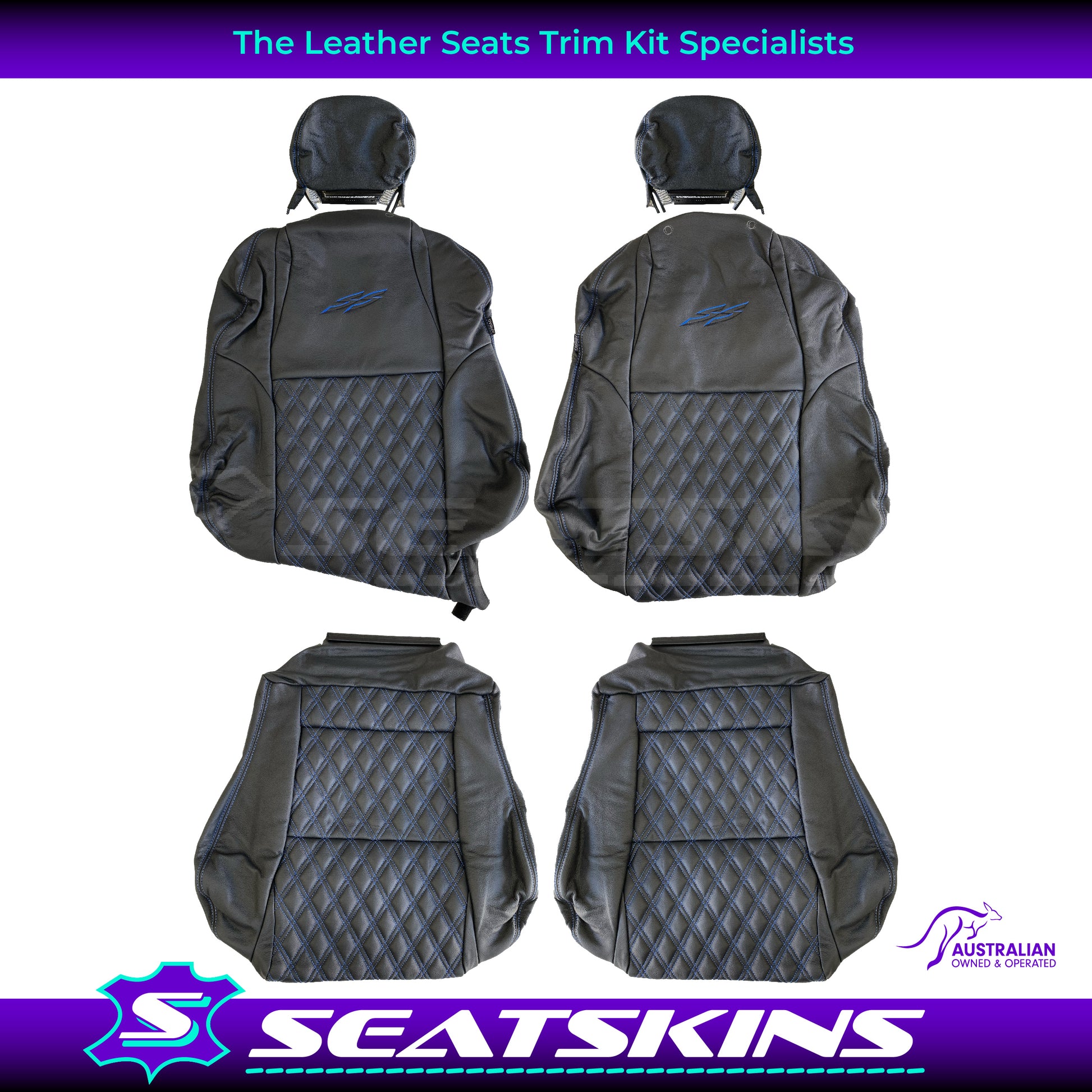 LEATHER SEATS TRIM KIT SKINS TO FIT HOLDEN VY S2 / VZ SS UTE BLUE DIAMOND STITCH